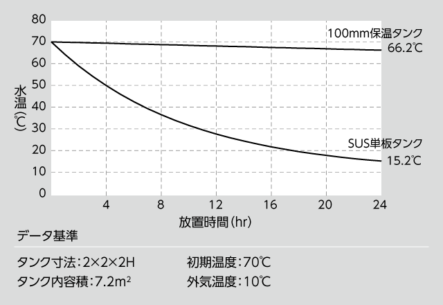 - ※保温性能図はタンクの設置環境や、通気口、MH形状によっても左右されますので、保温性能を保障する物ではありません。