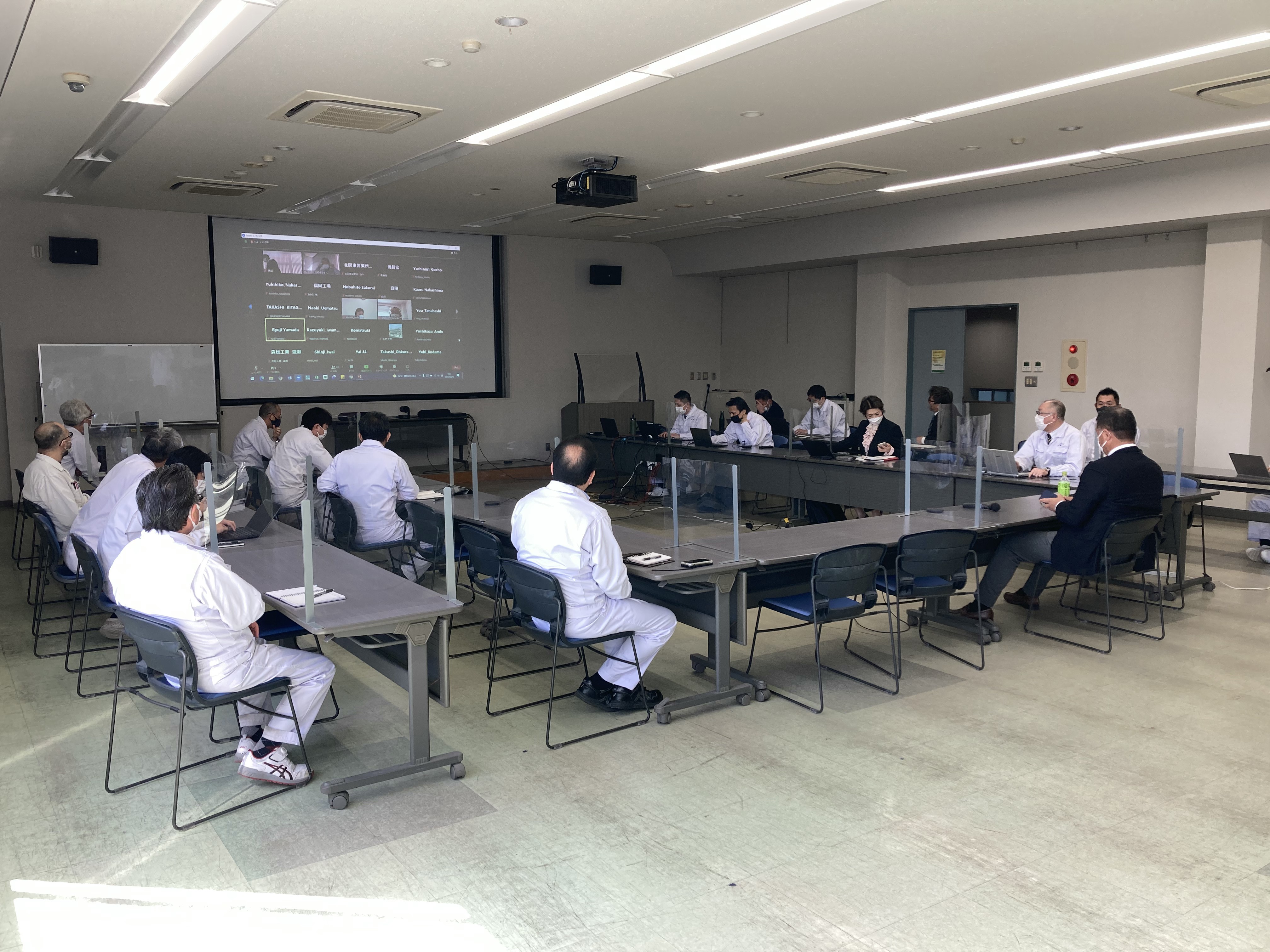 令和4年3月16日に、「令和4年 第1回コンプライアンス推進委員会」を開催し、松久社長をはじめ社員総勢91名(会場+オンライン)が参加しました。