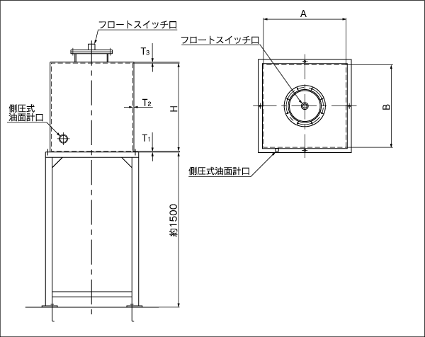 | 形式No. | 内容積(ℓ) | 寸法(mm) | 板厚(mm) | 給油口 |