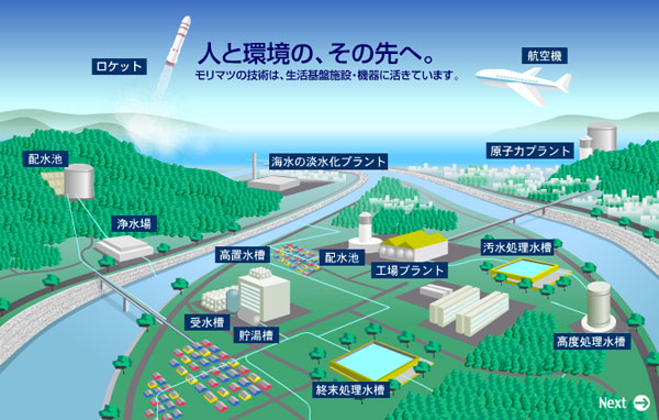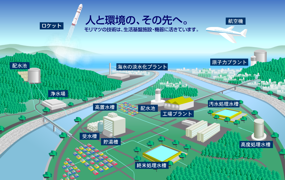 森松⼯業は、社会インフラを支える企業体としての歩みの中で、