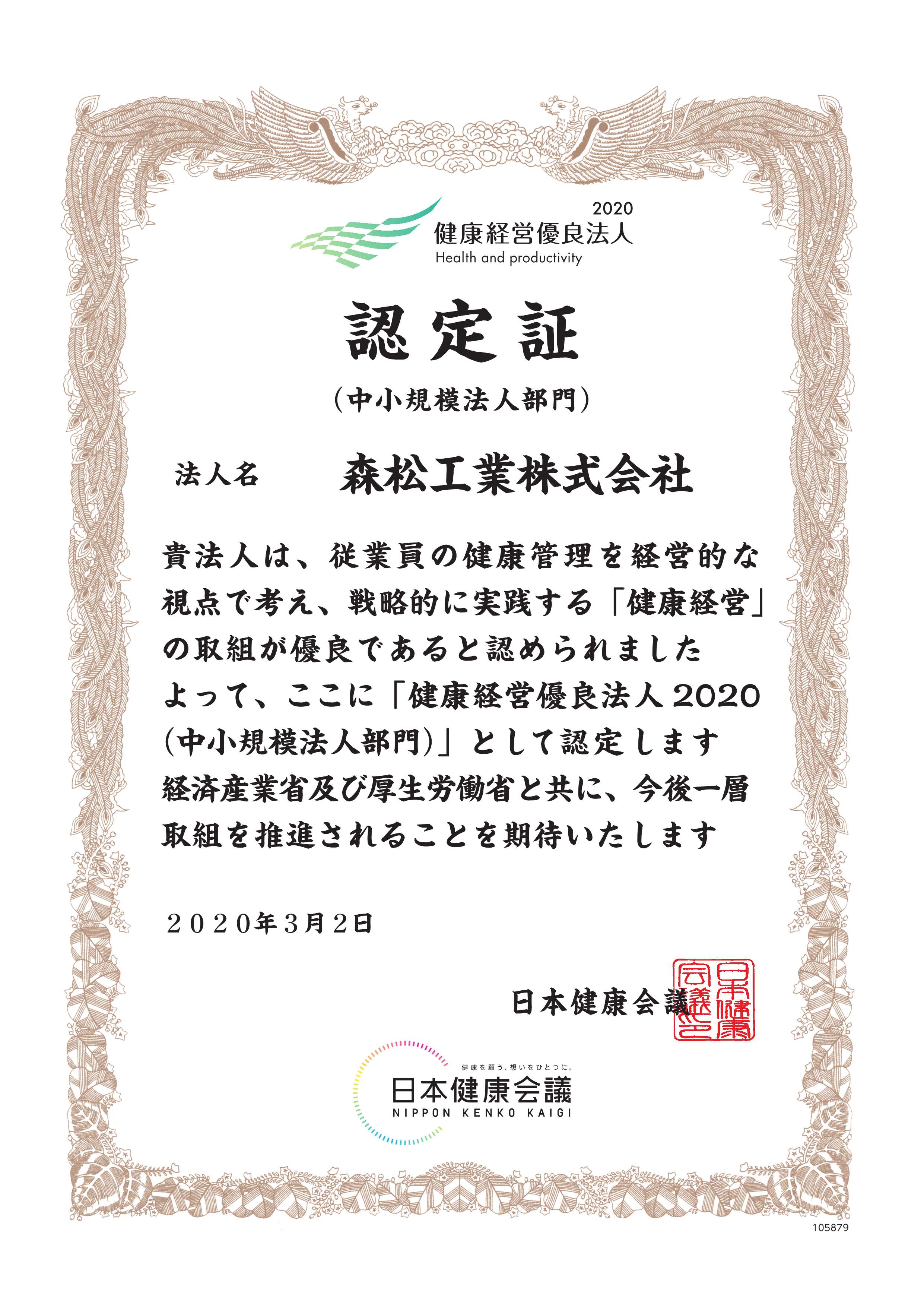 森松工業株式会社(本社:岐阜県本巣市、代表取締役社長 松久晃基)は、このたび経済産業省が選出する「健康経営優良法人2020(中小規模法人部門)に認定されました。
