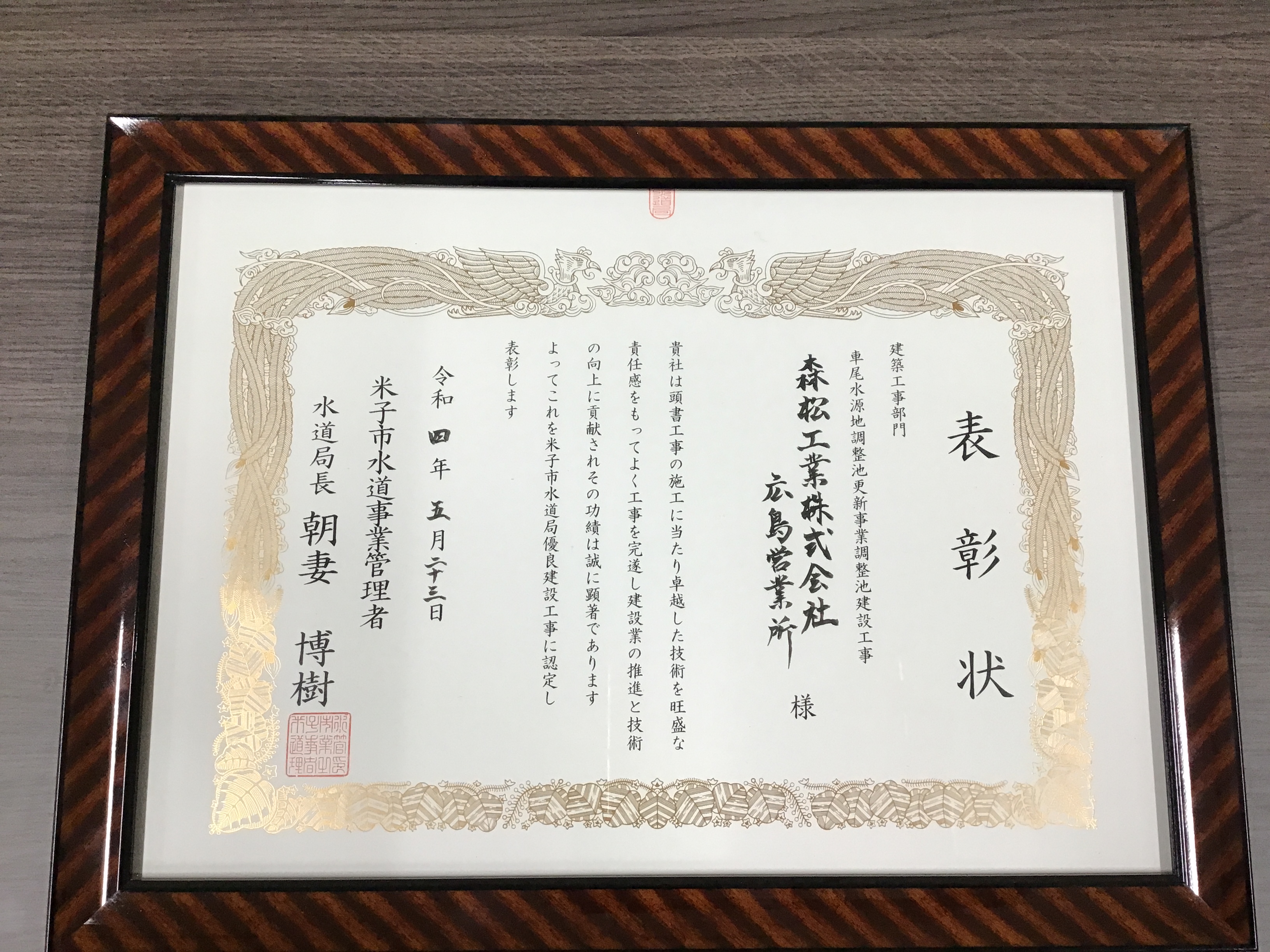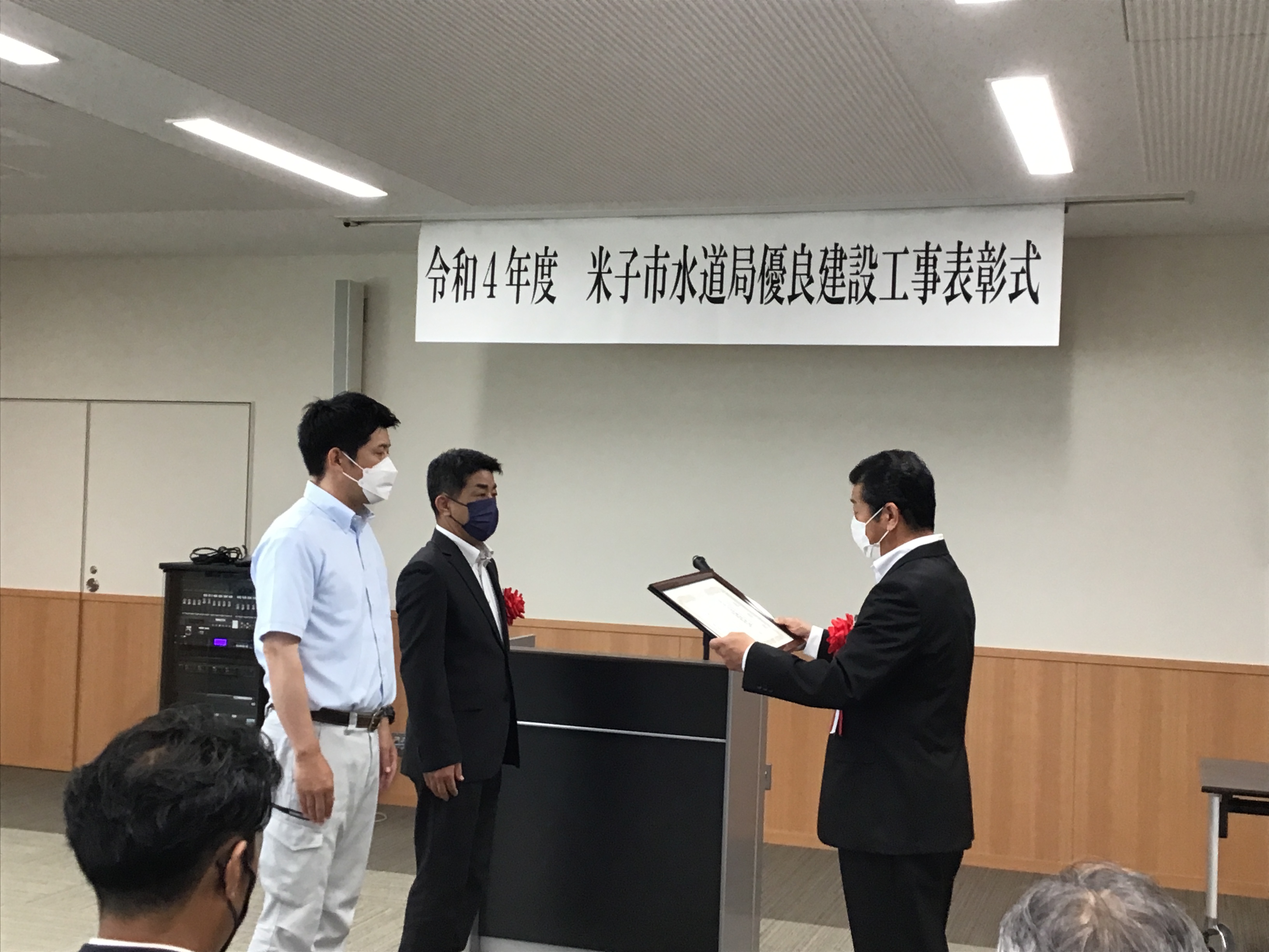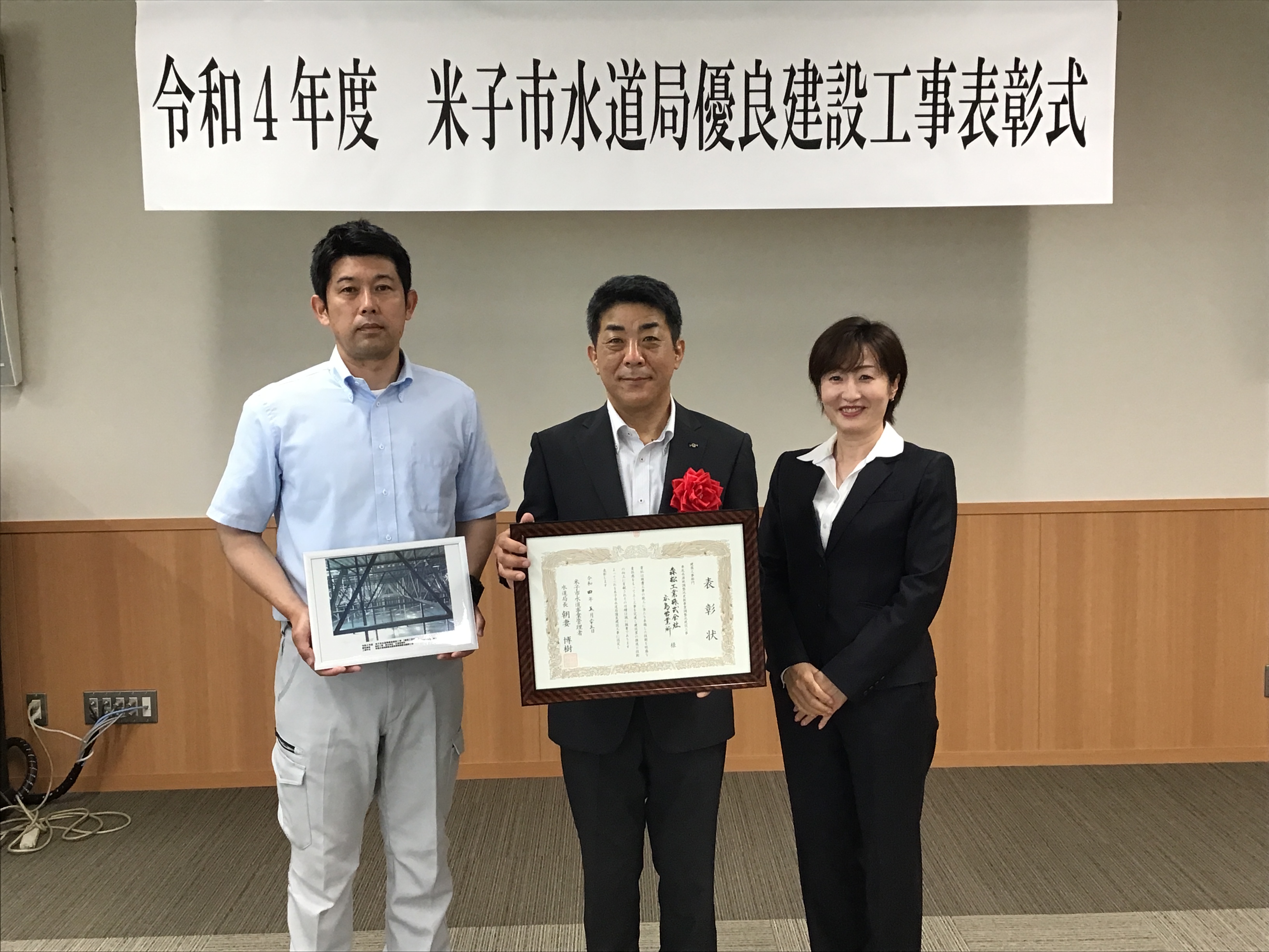 令和4年5月、米子市水道局より「令和4年度米子市水道局優良建設工事」の表彰をいただきました。