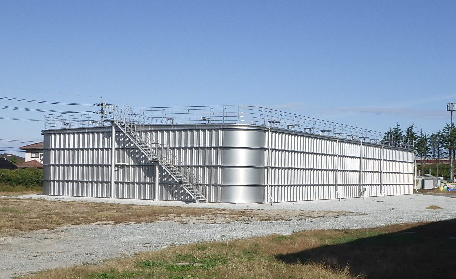 工事概要:調整池築造工事 SUS製 20m × 40m × 5.096mH(有効容量3,300t)1池